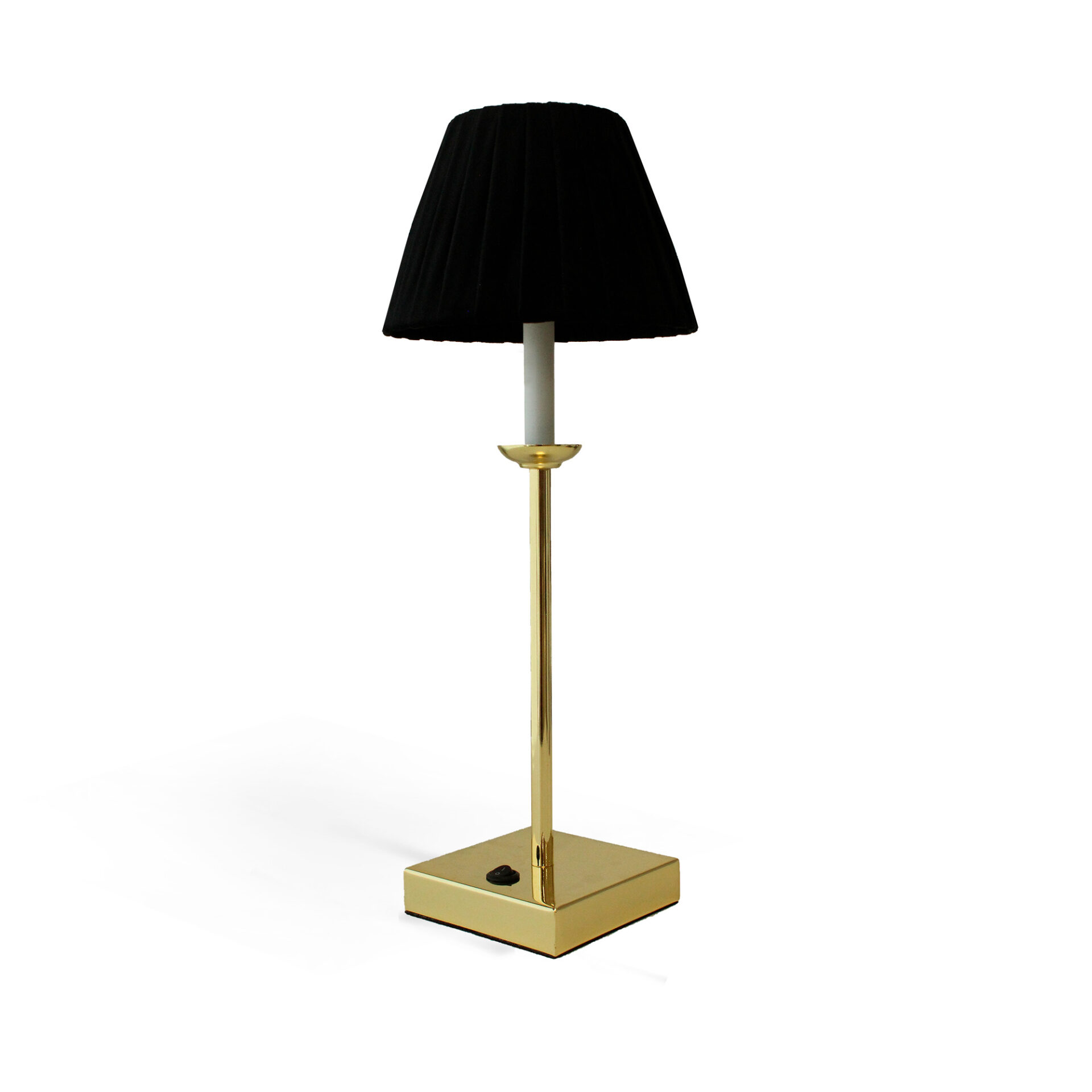 Lampada con stelo in metallo dorato con paralume in velluto nero. Cavetto USB caricabatterie.