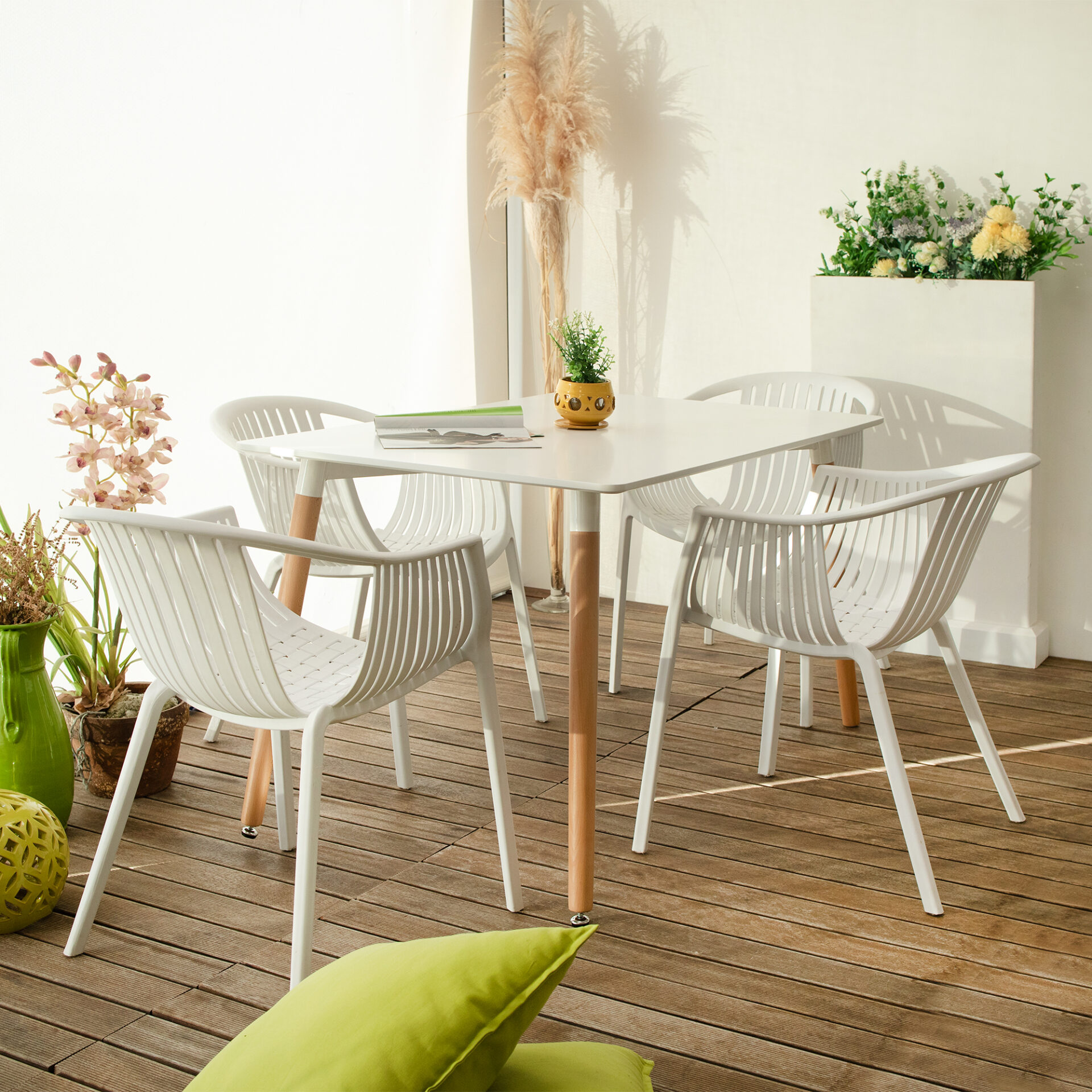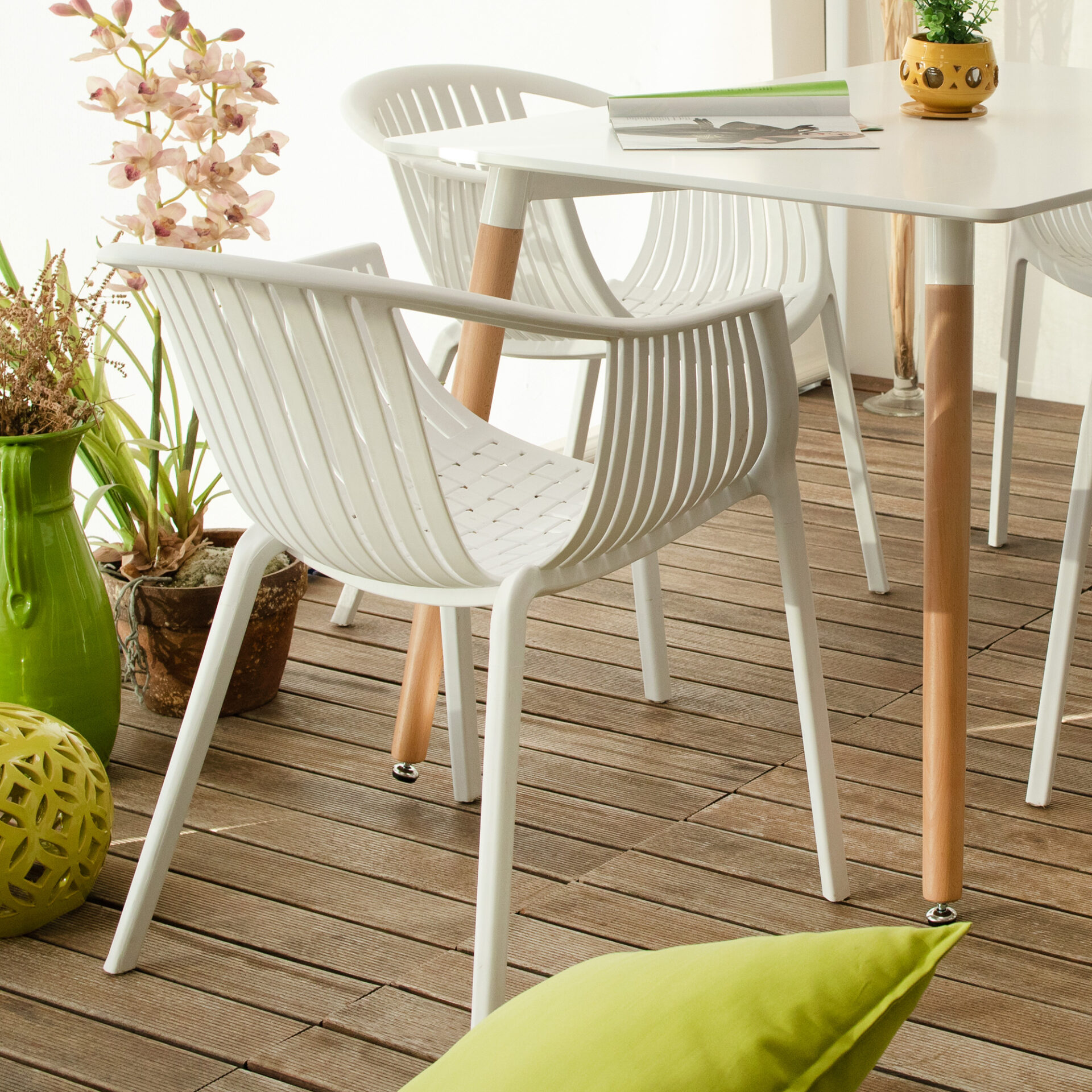 Dal design retrò, la sedia Aida è una rivisitazione delle vecchie sedie in vimini resa moderna dal materiale con il quale è realizzato, il polipropilene. Dallo schienale e dai braccioli si diramano sottili strisce che si intrecciano formando il particolare disegno della seduta. Solida e comoda è perfetta per arredare un giardino, un locale, ma anche un living o cucina moderna.
