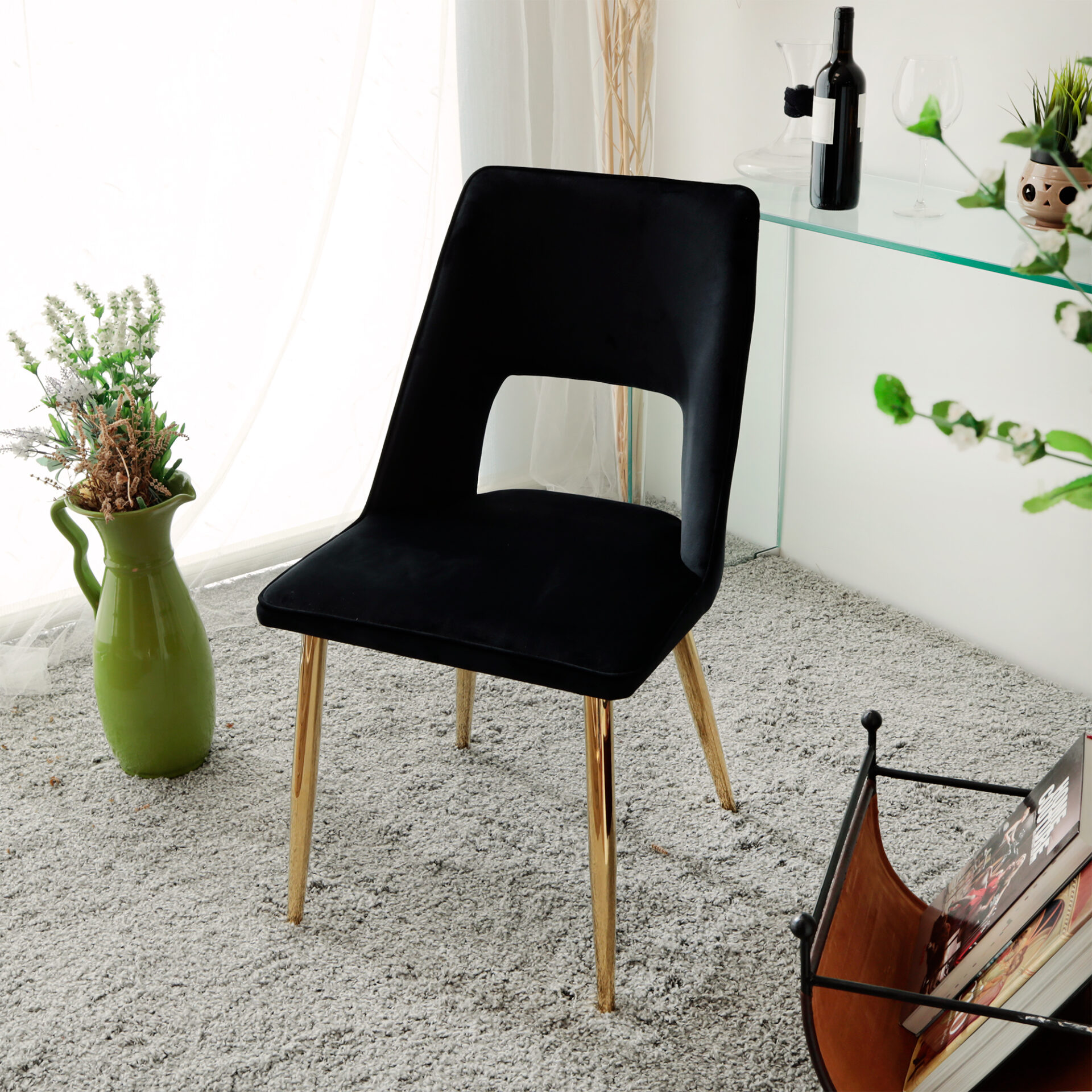 L’eleganza del velluto nero in un design essenziale e funzionale che si slancia a partire dalle gambe dalle linee vintage esaltate dalla finitura in oro lucido. Dal design originale e unico, la sedia Drill è un prezioso oggetto di design con cui arredare il proprio living.